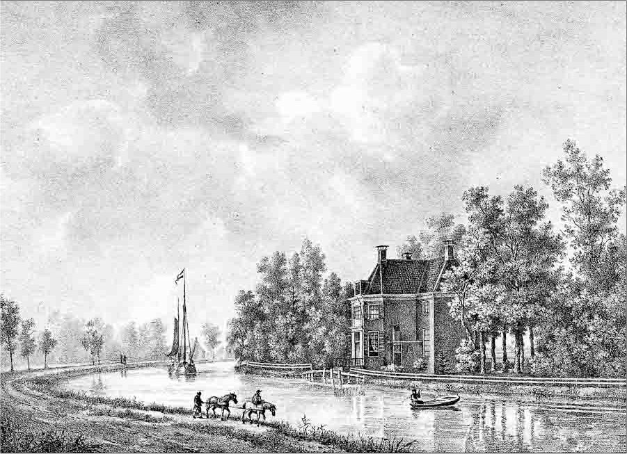 The estate consisted of a mansion and coach-house, situated on a very large estate, including several (rental) farms. The entrance to the home was originally from the river (Vecht) side, but during the 19th century, when roads were better, the house was remodeled and the entrance was moved to the street-side.