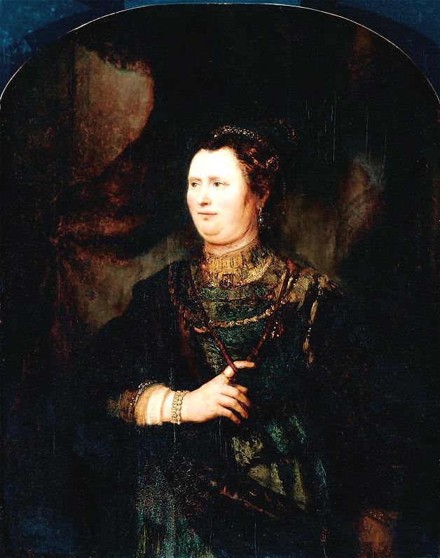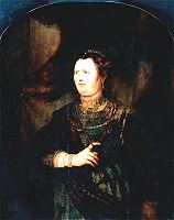 ARTIST: The most important work from this time is The Anatomy Lesson of Dr. Tulp, which brought a whole new vitality to the group portrait. Rembrandt’s success in the 1630s was personal as well. 1634 he married Saskia van Uylenburch; his tender portraits of her reflect a blissful union, but their happiness was marred by a succession of infant deaths. Of their 4 children, only Titus (1641-68) lived longer than 2 months. Saskia herself died in 1642, the year Rembrandt painted his most famous picture, the misnamed Night Watch, the culminating work of the Dutch tradition of civic guard portraits (a genre particularly associated with Frans Hals). In spite of a 19th c story regarding the clients’ dissatisfaction, evidence suggests this picture was well received. Although portraits and religious works bulk largest in his output, he made highly original contributions to other genres, including still life. And he painted some - such as The Polish Rider – which defy classification. Nevertheless, in the 1640s Rembrandt’s life did take a downward turn. He concentrated more on religious and landscape pieces, and his style grew more introspective. There were domestic problems, too. Geertge Dircx, a widow employed as nanny to Titus, sued Rembrandt for breach of promise after his affections turned to Hendrickje Stoffels, a servant some twenty years his junior. Unpleasant legal proceedings ended with Geertge’s remand to an asylum. Because of a clause in Saskia’s will, Rembrandt was unable to marry Hendrickje, but they were together the rest of her life, and she bore him two children. (A daughter, Cornelia, born in 1654, was the only child to outlive him.) Financial difficulties, too, led to the sale of his beautiful home and his collections; in 1660 he moved to a poorer district. Although his final years were saddened by the deaths of both Titus and Hendrickje, Rembrandt continued to be respected, and worked till the end. He faced life with dignity, neither disillusioned nor bitter. SUBJECT: PAINTING: