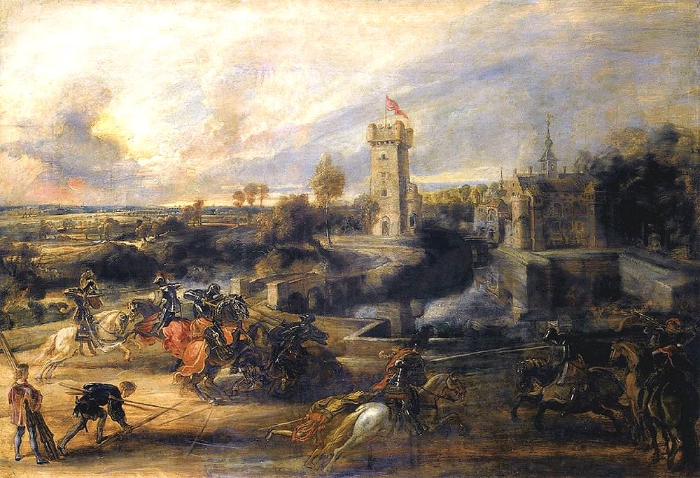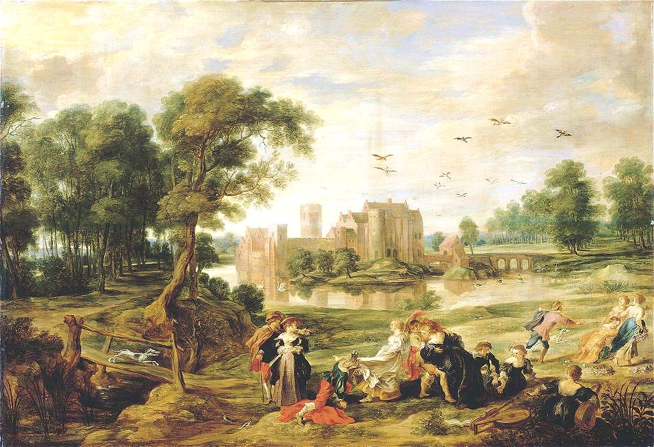 After 16 years of marriage, Isabella died from the plague in 1626. Rubens was devastated. He got more and more involved in politics, but also tried to escape with his children to the countryside. In 1627, when he was 50 years old, Rubens bought a castle in Ekeren, north of Antwerp, and three years later he bought additional land there. Nothing has remained of the building or the surrounding land. The painting depicts a medieval castle in the midst of a park-like landscape. 16