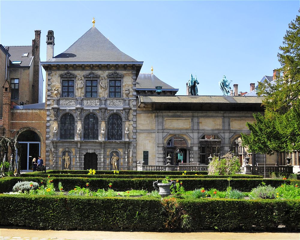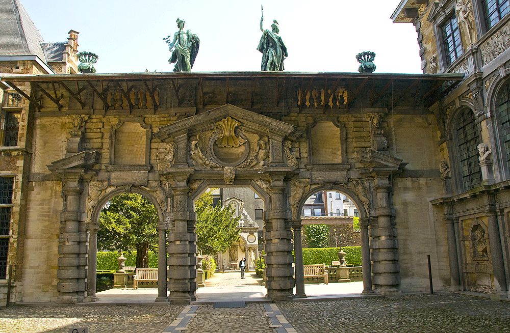 It was a great deal to pay, but the lot came with a handsome house in the traditional Flemish style -see left- and an adjacent laundry house that, once demolished, would leave enough room for Rubens to build a new wing facing the street and, in addition, a pair of row houses to rent, plus a large back yard for formal gardens. It was a good 5 years later before Rubens' family could actually move into their new home (they lived at Isabella's parents for that time), and more than a decade later before the artist was finally done tinkering and making alterations. 8p75 By that time he had spent a total of 24,000 guilders ($1.4 million). 9